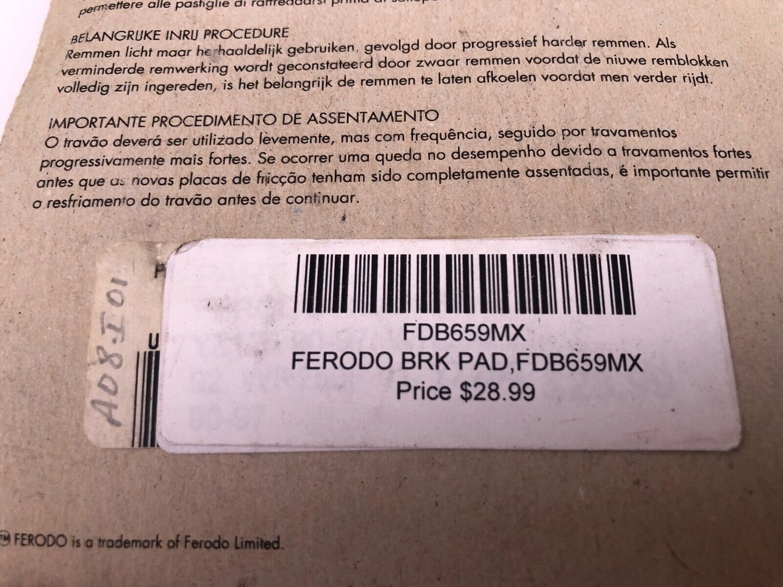 Ferodo Brake Pad Set KX125 1986 KX Ferodo FDB659MX FDB 659MX A5